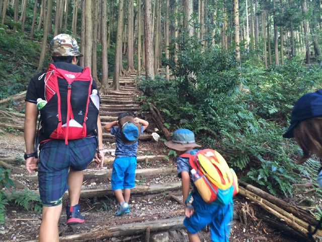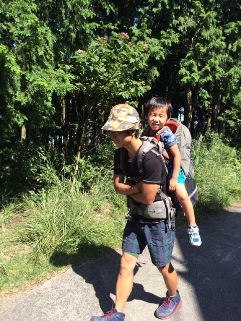 3歳児をキャリアーで担いで下山。総重量18kg程で丁度良いトレーニングになりました。