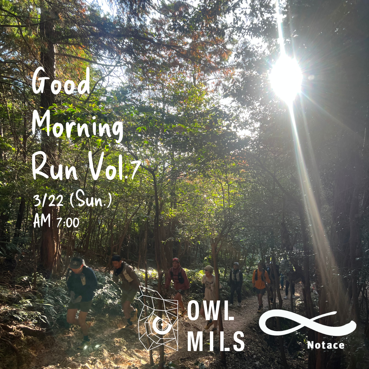 2026年3月9日 BLOG、NEWS 2026/3/22(日) Good Morning Run Vol.7@朝明渓谷 ×try on OWLMILS & NOTACE Good Morning Runとは? 「休日の朝一緒にトレイルを走る。」 少しだけ早起きして、近くのトレイルを走る。1番シンプルな行為なのに非常にオモシロイと思える遊び方。 それは、友人とドライブを楽しむ感覚やバイクや...続きを読む...