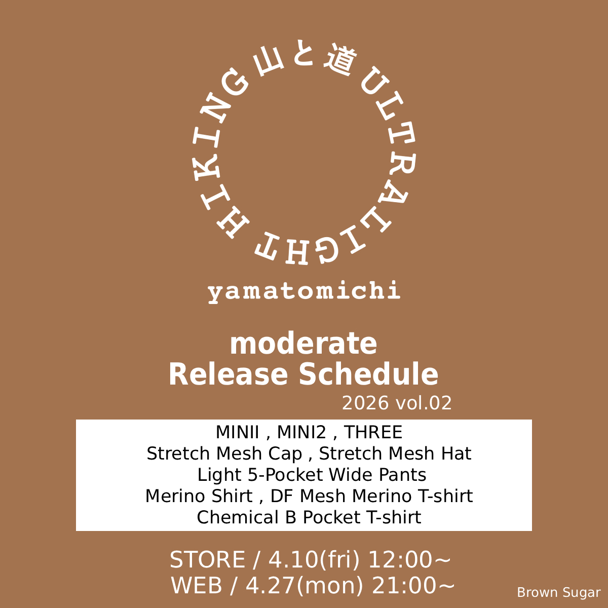 2026年4月8日 NEWS 2026年 山と道 moderate販売 Vol.2 のご案内 いつも当店をご利用頂き、誠にありがとうございます。 当店では、以下のスケジュールにて山と道の製品を販売させて頂きます。 「WEBパートナーショップ(→■)」の取り組みにより、当店のオンラインショプにて山と道製品をご購入頂...続きを読む...