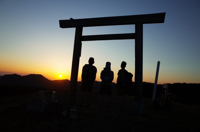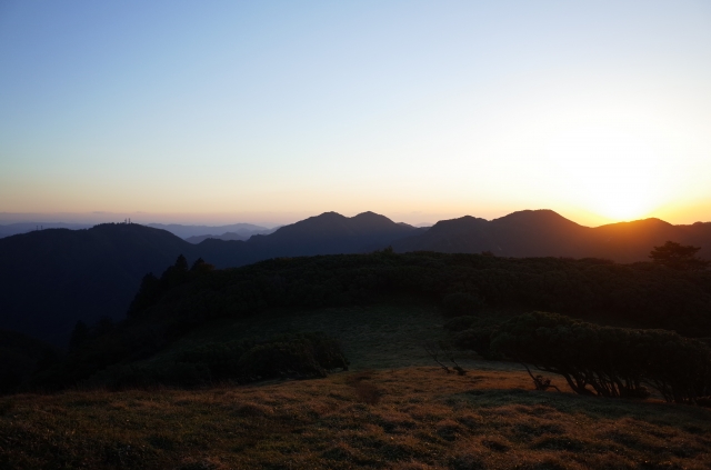 最後の尾根をこなし入道頂上の草原が眼前に広がると、そこは夕日で包まれていました。