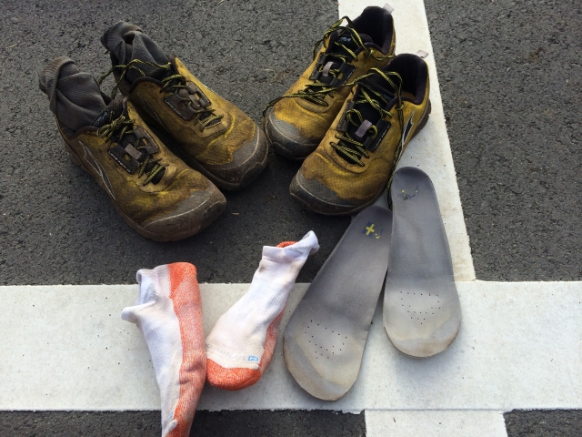 結局7~8kgは積んでいたかと思いますが、シューズのクッション性とインソールの程よい補正力が、最後まで足の助けとなってくれました。