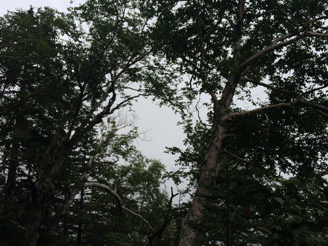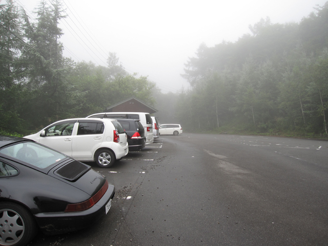 雨は降ってこないものの、林道では視界はずっと悪く、頂上の天気もきっと悪いのだろうと思い、