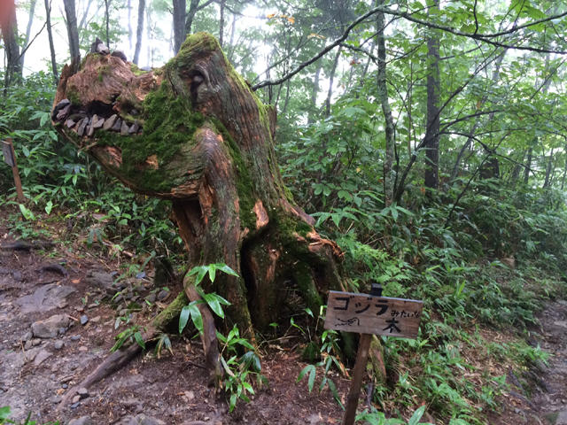 登山口から、少しあがったところに“ゴジラ”が出現。