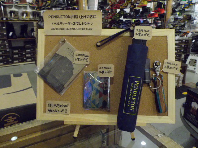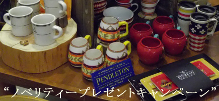 2013年12月10日 NEWS PENDLETONノベリティープレゼントキャンペーン ■ キャンペーン内容 ■ PENDLETONの商品を¥5,000以上お買い上げのお客様に、 非売品のノベリティーをプレゼント。 お買い上げ合計金額に応じて、ノベリティーの内容も変わります。 ■ 期間 ■ 数に限りが御座いますので、無くなり次第終了となります。 ¥5,000以上のお買い上げですと、 ¥10,000以上のお買い上げですと、 ¥20,000以上のお買い上げですと、 ¥30,000以上のお買い上げですと、