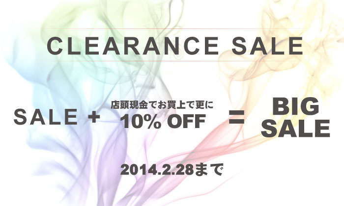 店頭にて現金お買上頂いたお客様に限り、セール表示価格からプラス10%OFFさせて頂きます。