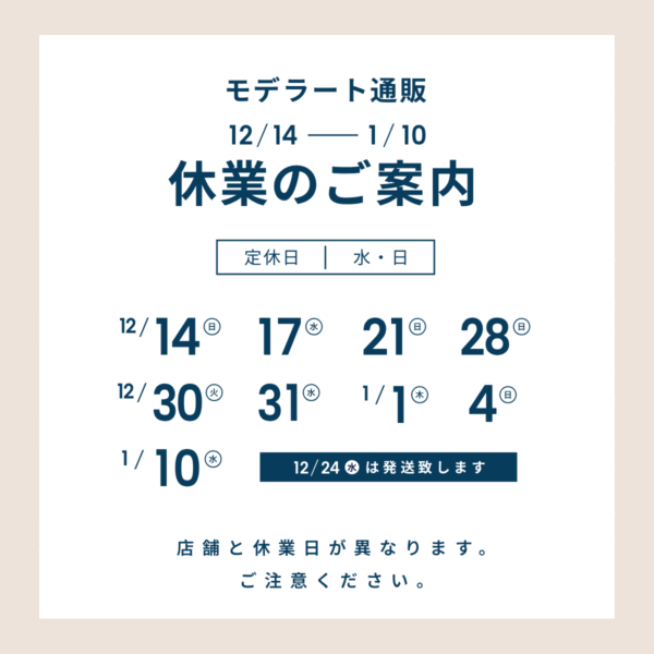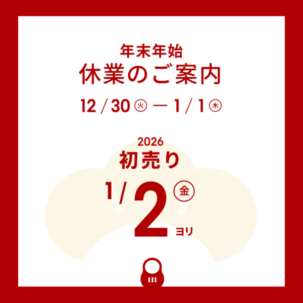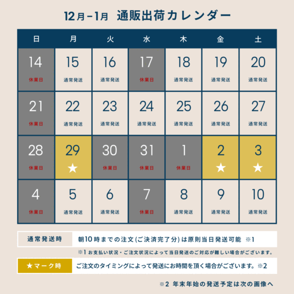 2025年の年末年始の営業日、通販発送に関するご案内を下記の通りご案内申し上げます。