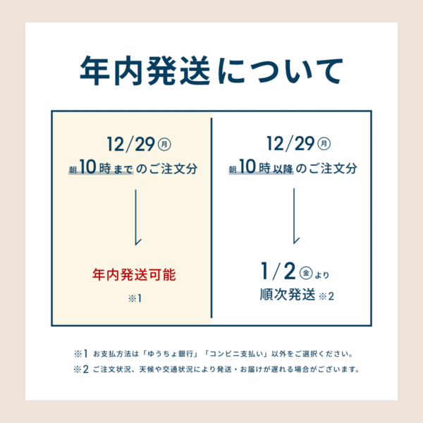 12月29日(月)午前10時までのご注文分(ご決済・ご入金完了分)